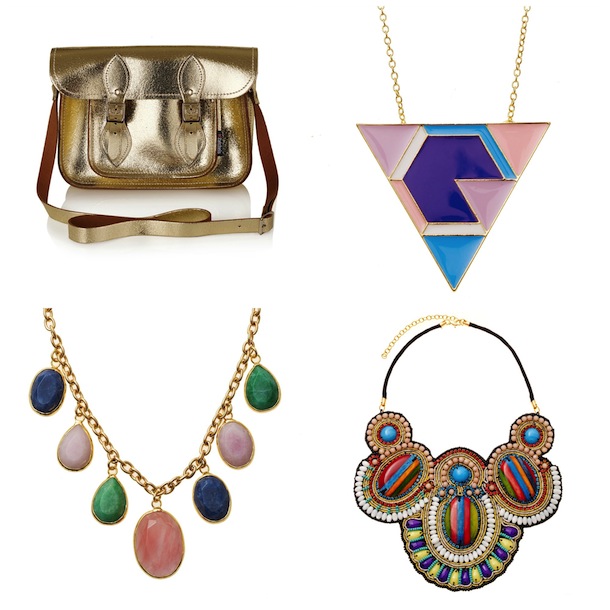 Top left to right: Zatchels classic metallic satchel $1395, Coney Geo enamel pendant $188